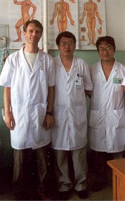 Kris naast de directeur van de acupunctuur afdeling in het QingDao ziekenhuis, Dr. Liu. |